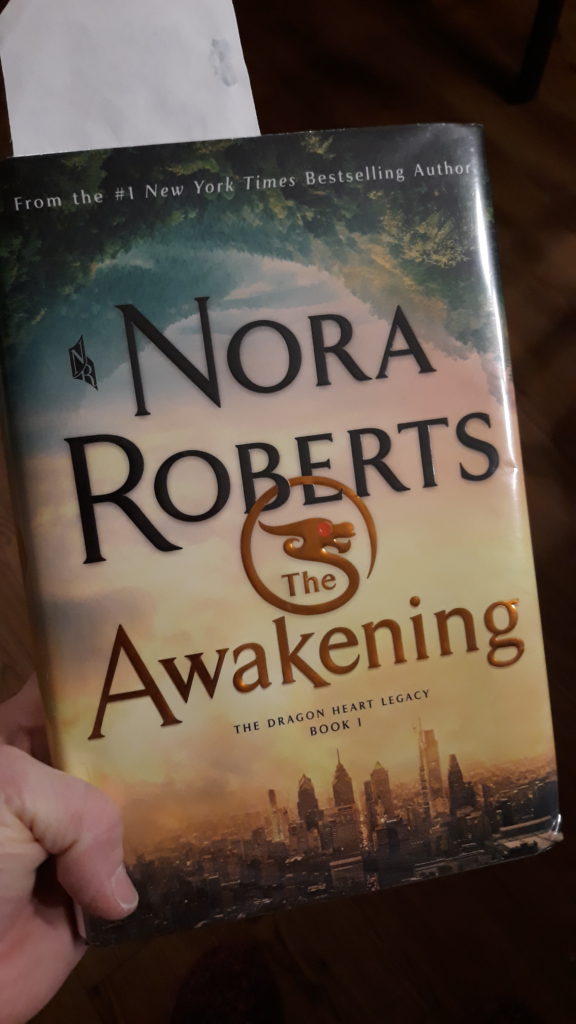 I finished The Awaking by Nora Roberts. It’s the first book of The Dragon Heart Legacy trilogy, and unfortunately the next doesn’t come out until November. In the book Breen discovers her mother has kept millions of dollars from her. She uses the money to go to Ireland in an attempt to find her father, and finds a land filled with dragons, fairies and more. I enjoyed the book, and am sad I have to wait for the next one.