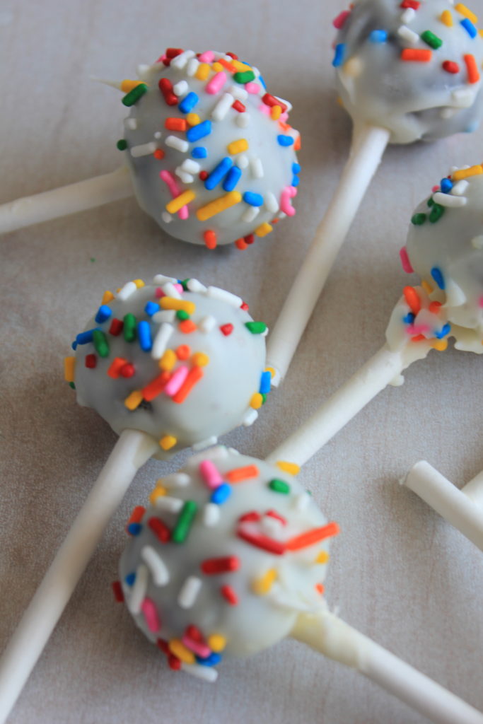 I cut the dome part of the cake to make it flat, and couldn’t let it go to waste, so I made some cake pops. So tasty!