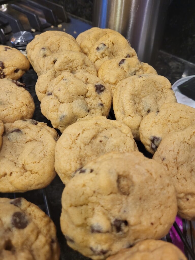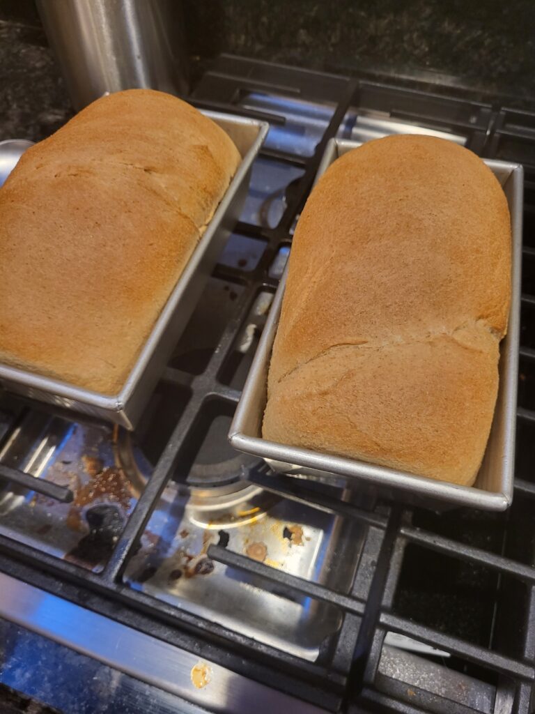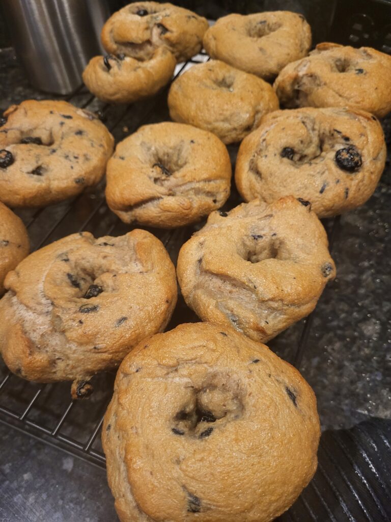 In an effort to not spend so much on snacks (and because we were pretty low on snacks since I am trying to go every other week to the grocery store) I made a few yummy items! I made sandwich bread (because we were out), chocolate chip cookies, banana chocolate chip muffins, and blueberry bagels. All of them were made with with home milled flour. I hope to get the cookie and bagel recipe on the blog in the near future. If your not crazy like me, and buy your flour like a normal person, you can check out my banana chocolate chip muffin recipe out.