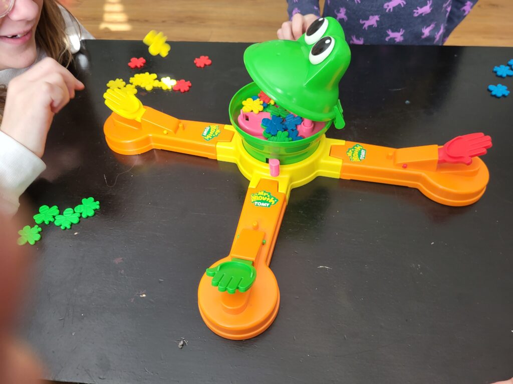 Mr. Mouth: A classic from our childhood (this is actually Matt’s old game). Try to get the flies into the frogs mouth. In our case, if you pic the green you pretty much are guaranteed to win.