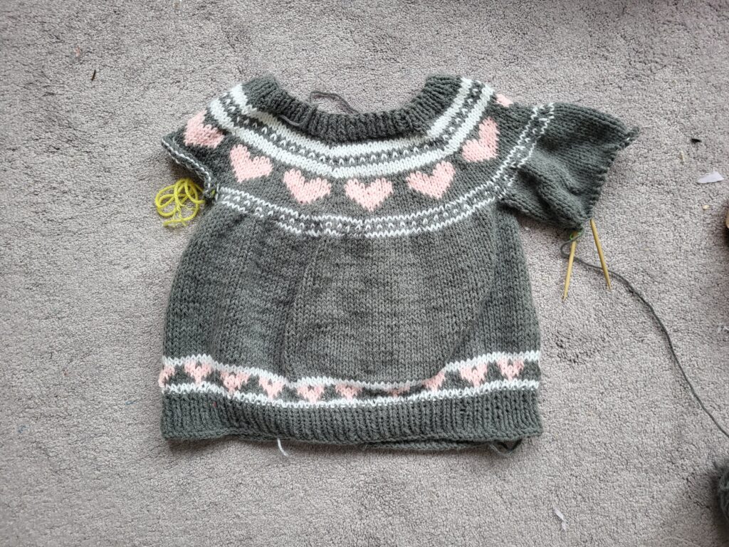 I also got my act together and started finishing up this sweater that I started knitting months ago. It is for Annabelle, but unfortunately I think I made it a little short, and a little wide. I will have to see if I can add some length to it some how. I didn’t use a pattern, so was just sort of winging it, but I learned through my mistakes.