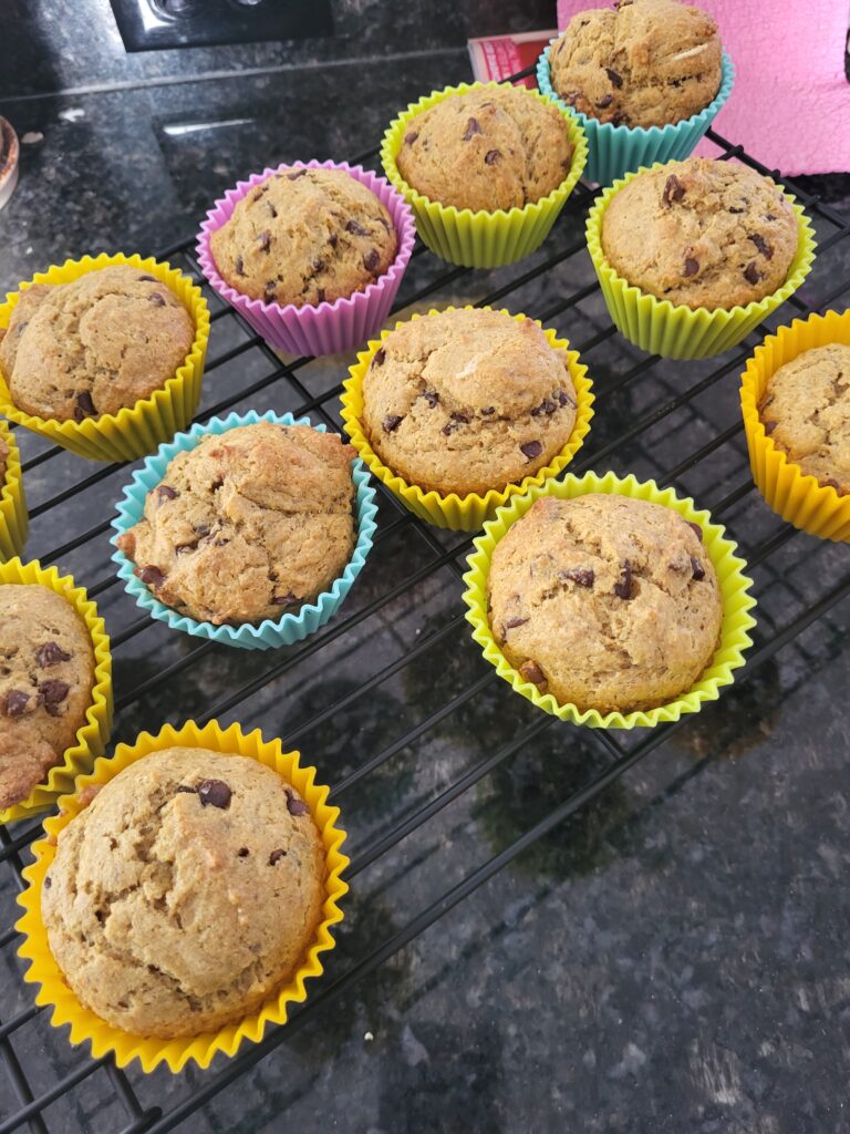 I was feeling well enough to finish up some laundry and make a quick batch of banana muffins (we have a lot of frozen bananas that I am trying to use up. Plus a muffin makes for a great snack at school), and zucchini muffins. But that for sure did it in for me, and I spent the rest of the afternoon on the couch.
