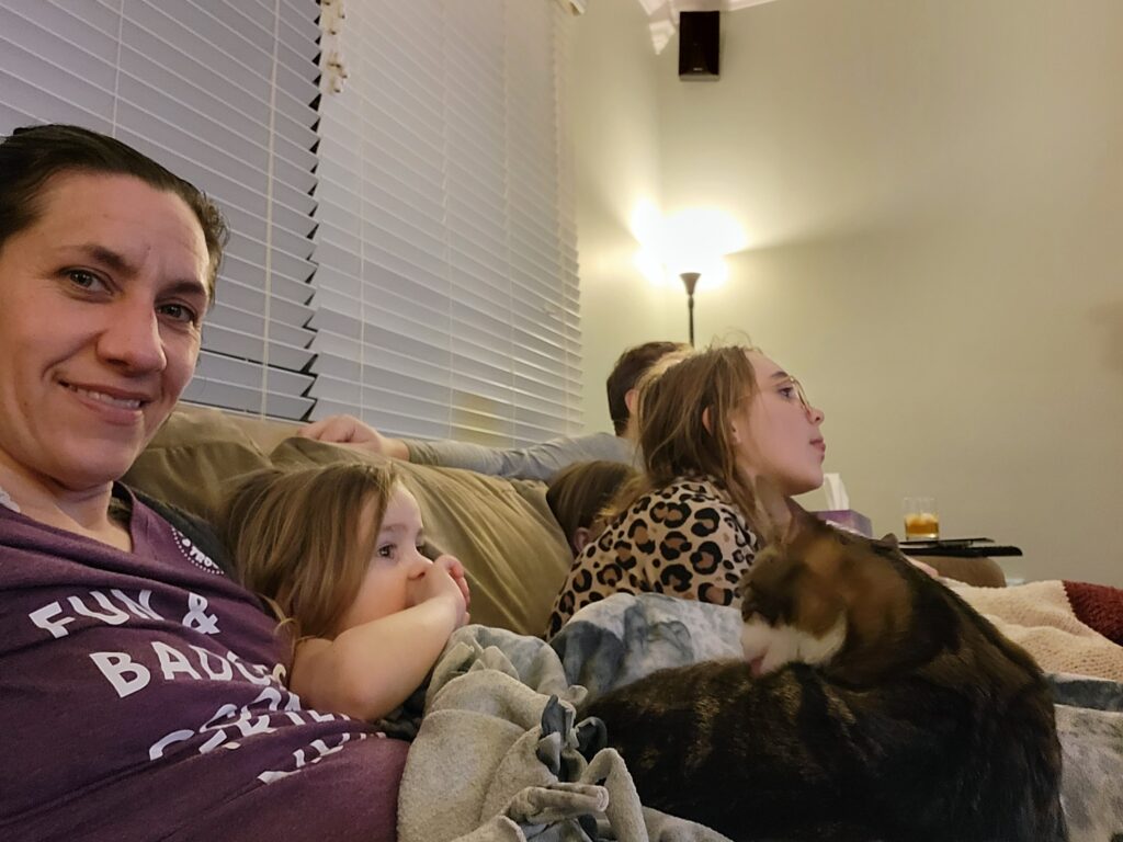We then started watching Pirates of the Caribbean Dead Man’s Chest. All but Pearl was on the couch.
