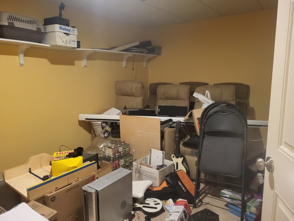 As you can see below, the room had become a dumping ground for lots of random stuff. So the first step was clearing it all out.