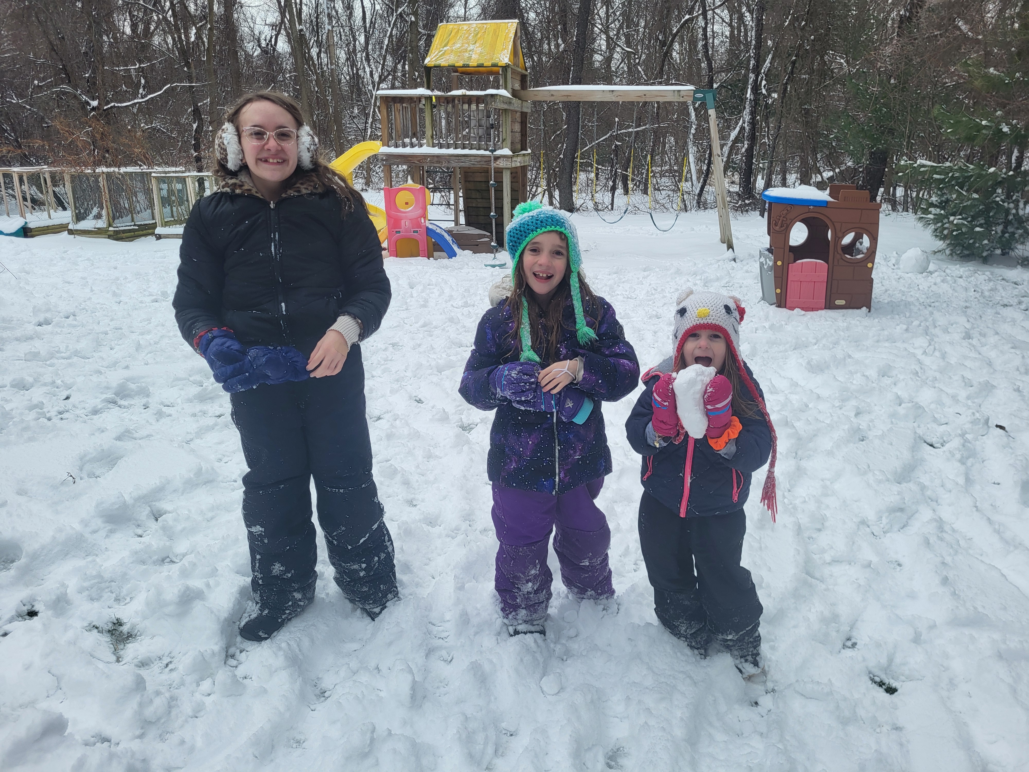 On Friday it snowed. Not enough to get a snow day, but enough were the girls were able to play outside when they got home from school. And you better bet I sent them out to play. A neighborhood friend came over to see if they wanted to play, so they stayed out even longer. By Sunday most of the snow had melted so I’m glad that got a chance to get outside as it hasn’t been a particularly snowy winter.