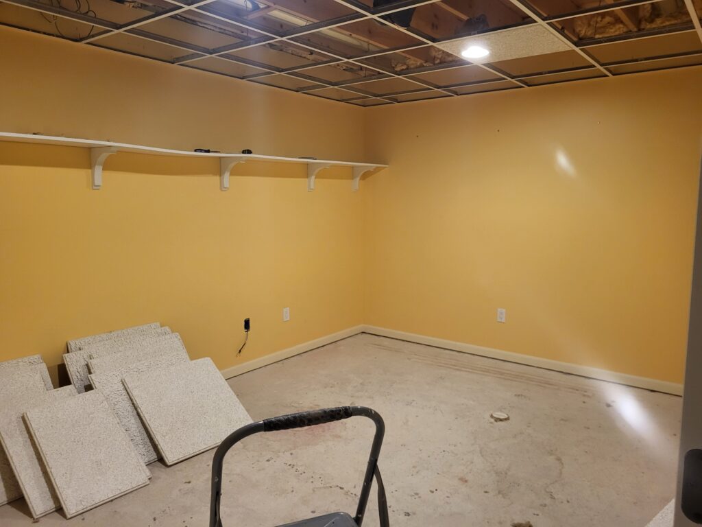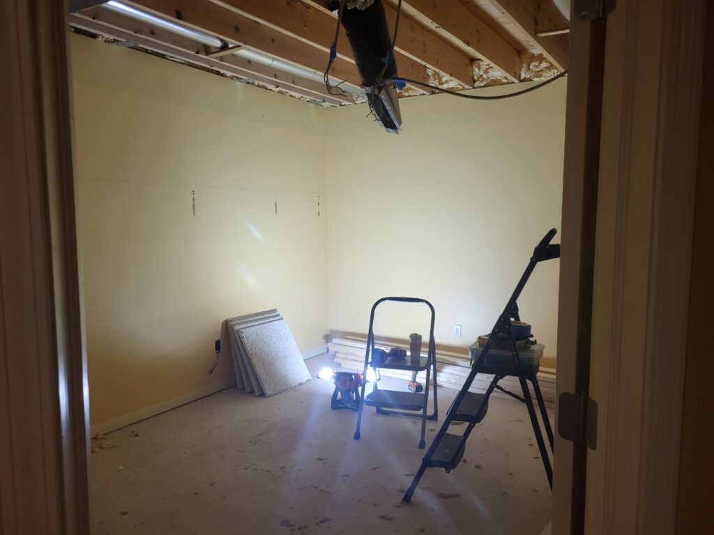 The next task will be drywalling the ceiling, which also involves building a frame for a soffit, which is a task we will begin this weekend.