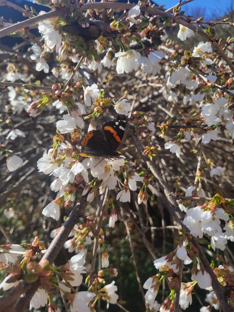 Here in Michigan April can be crazy in terms of weather. Some days it is 70 and sunny. Other days it is 30 and snowing. After a long winter when those warm days hit everyone is outside soaking up the rays. Our front tree was blooming, and covered in butterflies and bees. One day Aubrie decided we needed to have a picnic outside, and I wasn’t going to say no (she is pretending to be a cat).
