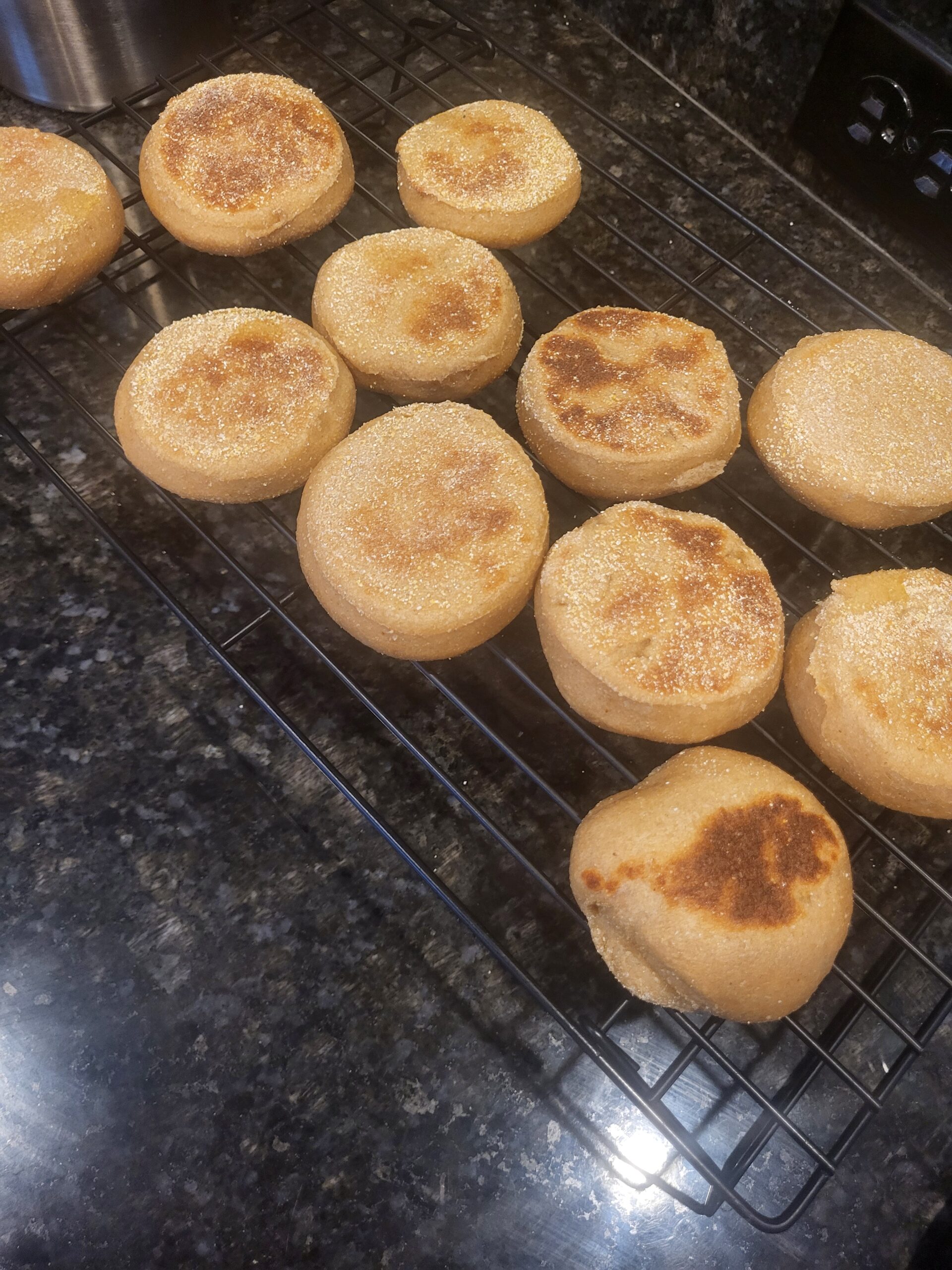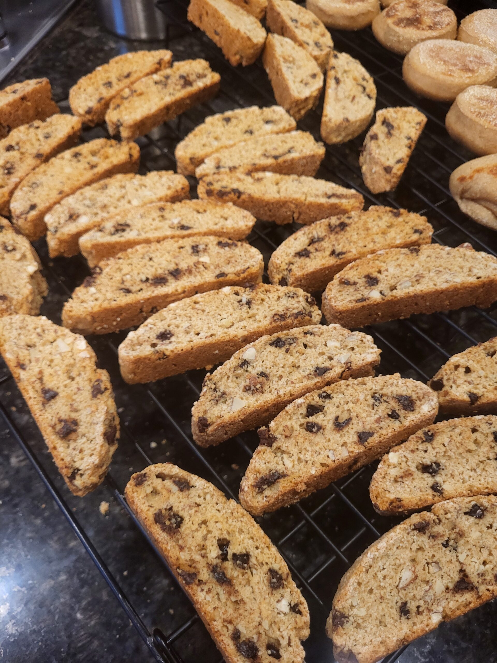 So from upper left I made English muffins, sourdough discard banana muffins, multigrain bread (still trying to perfect this recipe), sourdough biscotti, and sourdough discard chocolate chip cookies… which I hope to get up on the blog soon. They are a little different than my normal chocolate chip cookie recipe.