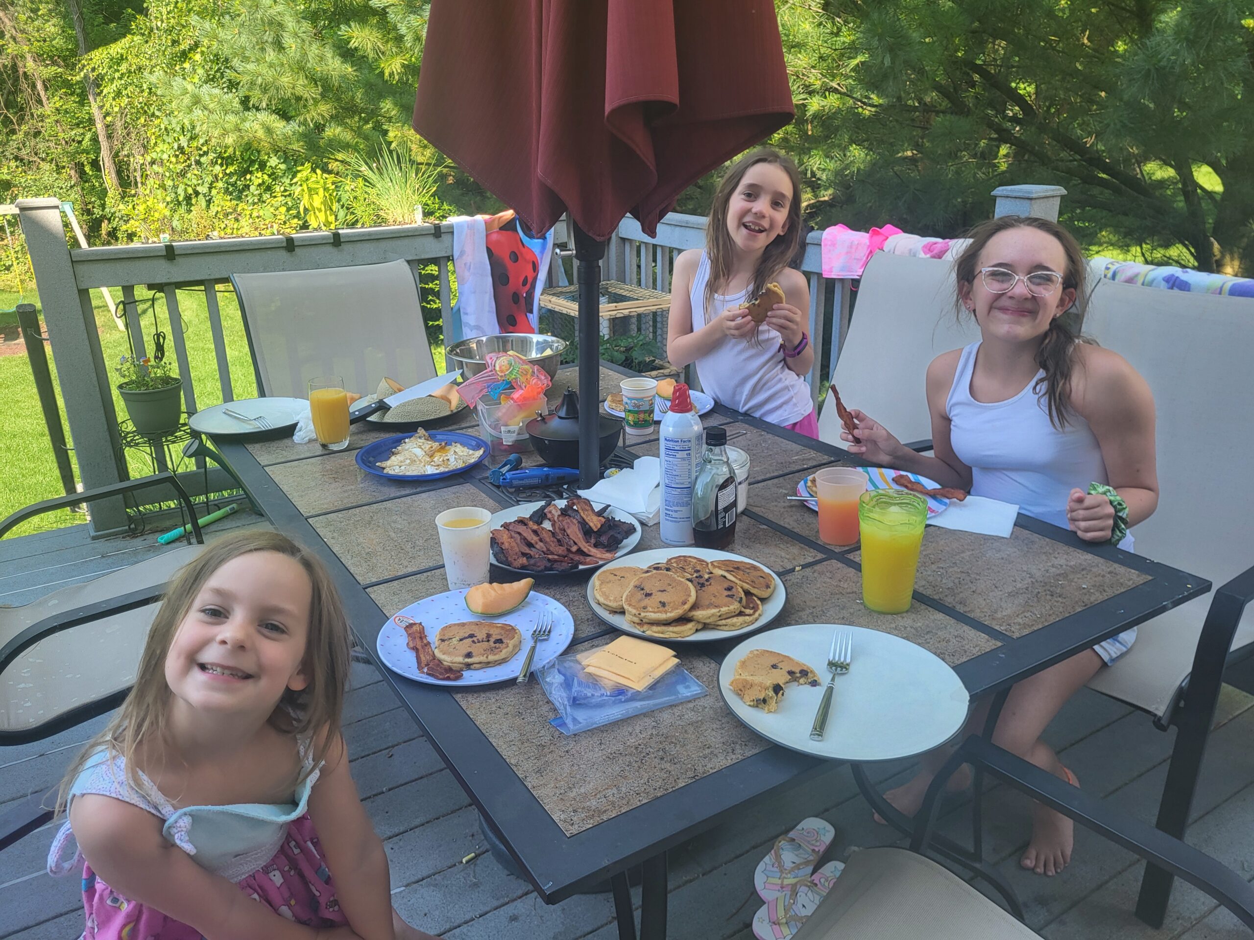 The other day Matt texted me saying he wanted to have a “staycation” day. He would get up and grill some breakfast, then we’d just spend the day by the pool with a break for hot dogs for lunch.