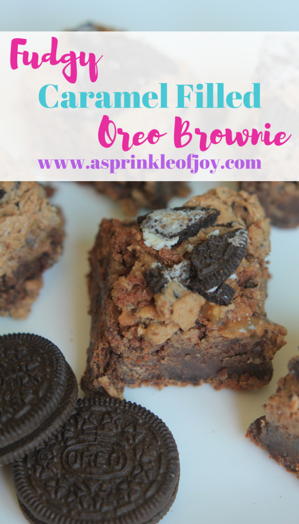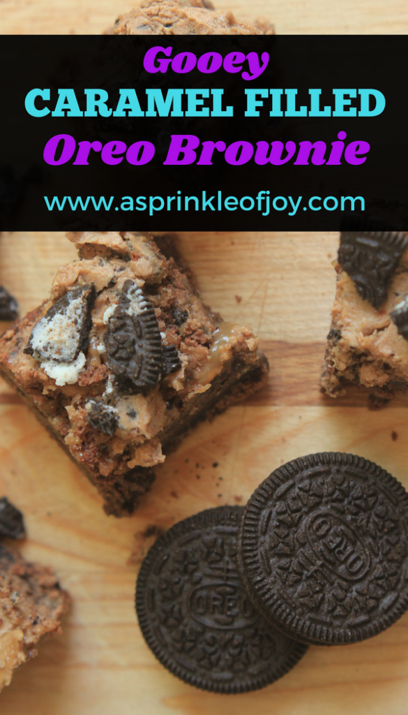 Lately I’ve been on a bit of an Oreo kick. You may remember this Oreo parfait I made a few weeks ago. So tasty. One of the deserts I made for Mother’s Day was this amazing caramel Oreo brownie. It is easy to make, and super sweet, so be sure to cut the pieces small.
