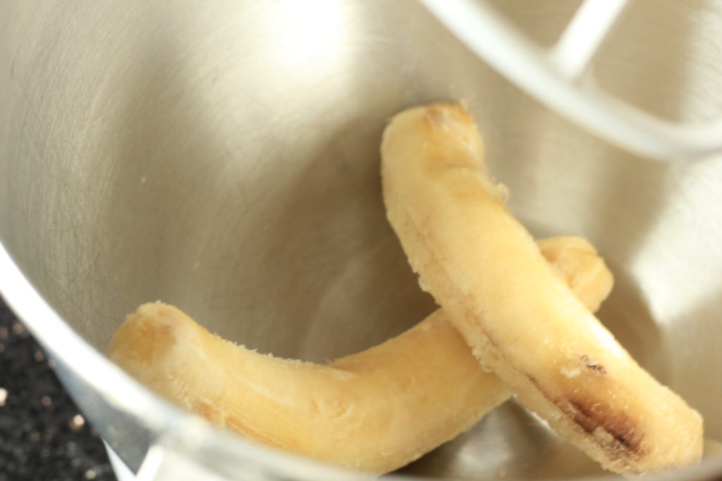 Use a stand mixer to mash your bananas. Â Simply put on the paddle attachment and turn it on.