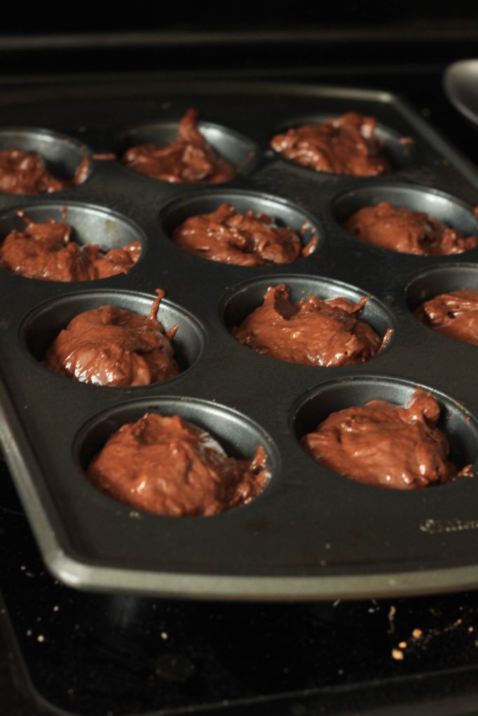 The batter will be a little bit thick, scoop it into a cupcake tray.