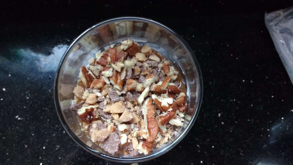 - Sprinkle pecans over caramel.