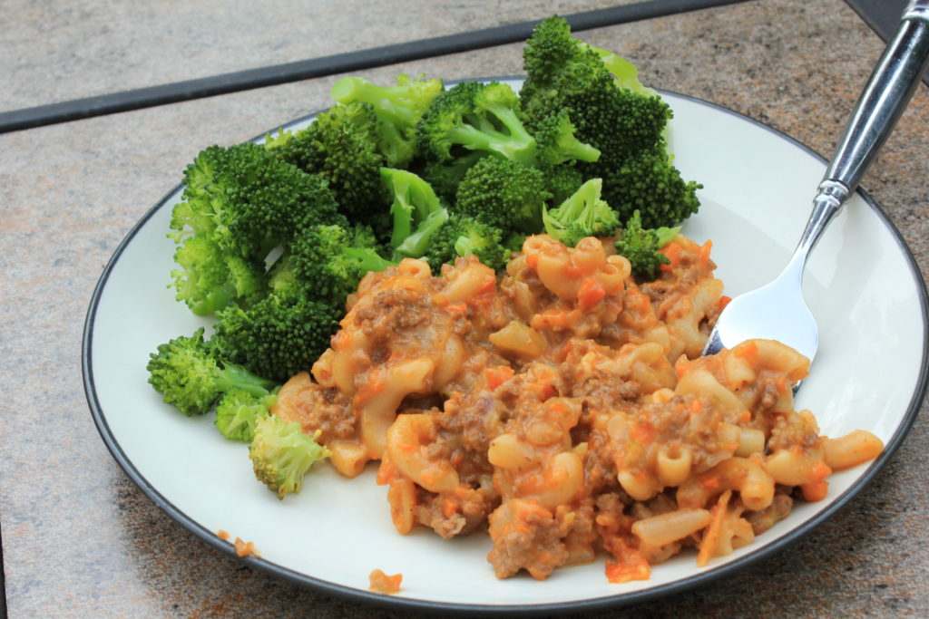 Today I want to share an easy peasy meal solution. Plus I filled this homemade hamburger helper with veggies to make it even more hearty. If your kids are anything like mine, then sometimes getting them to eat veggies can be a struggle.  This recipe disguises them a bit, which will hopefully help you sneak some into their diet.  Plus it’s quick to make, and you probably have all the ingredients on hand!