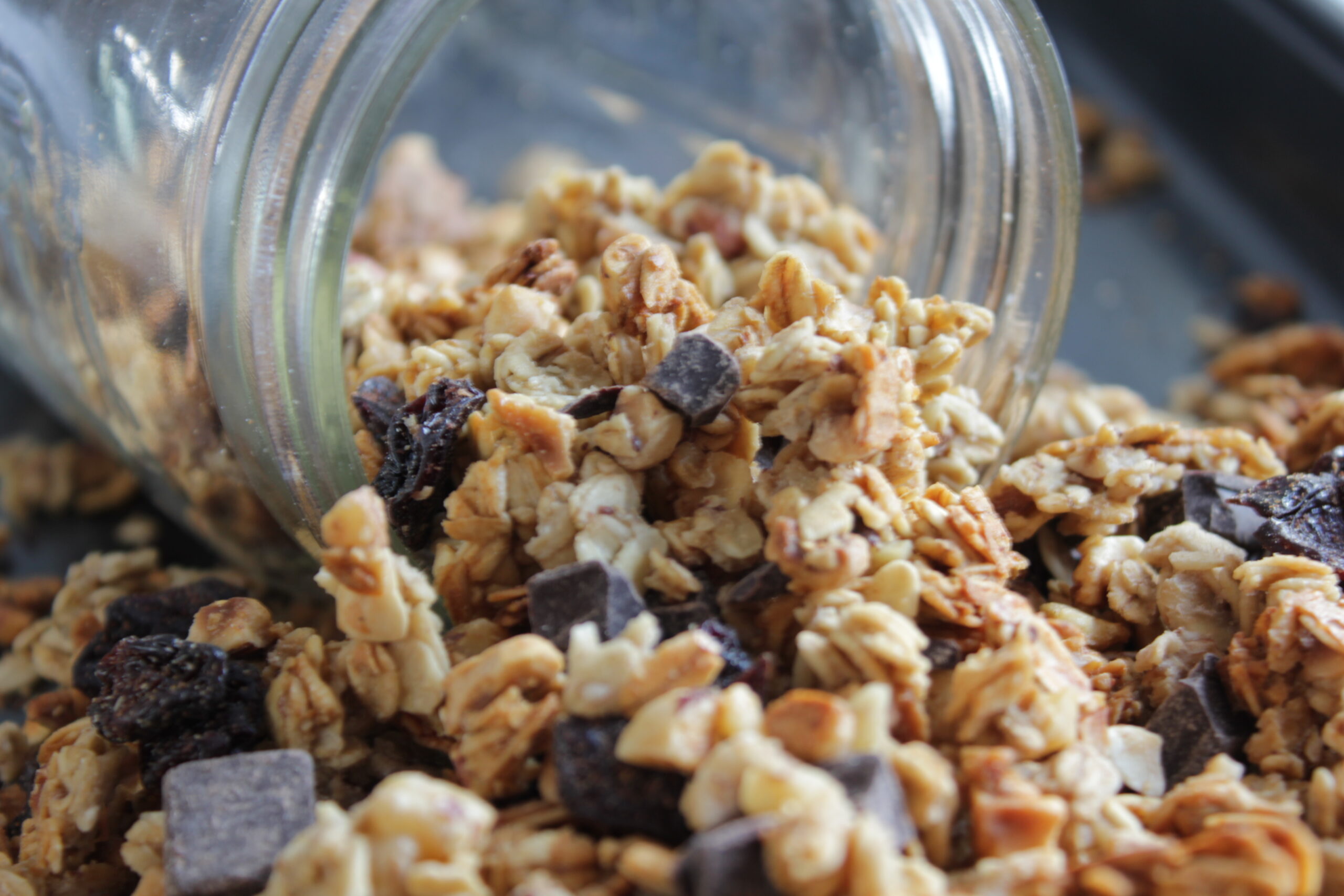 - Spread onto a cookie sheet lined with parchment paper or a slipmat. Bake for 45 minutes- 1 hours at 300℉. With about 20 minutes left mix granola a little and then continue baking until just turning golden.