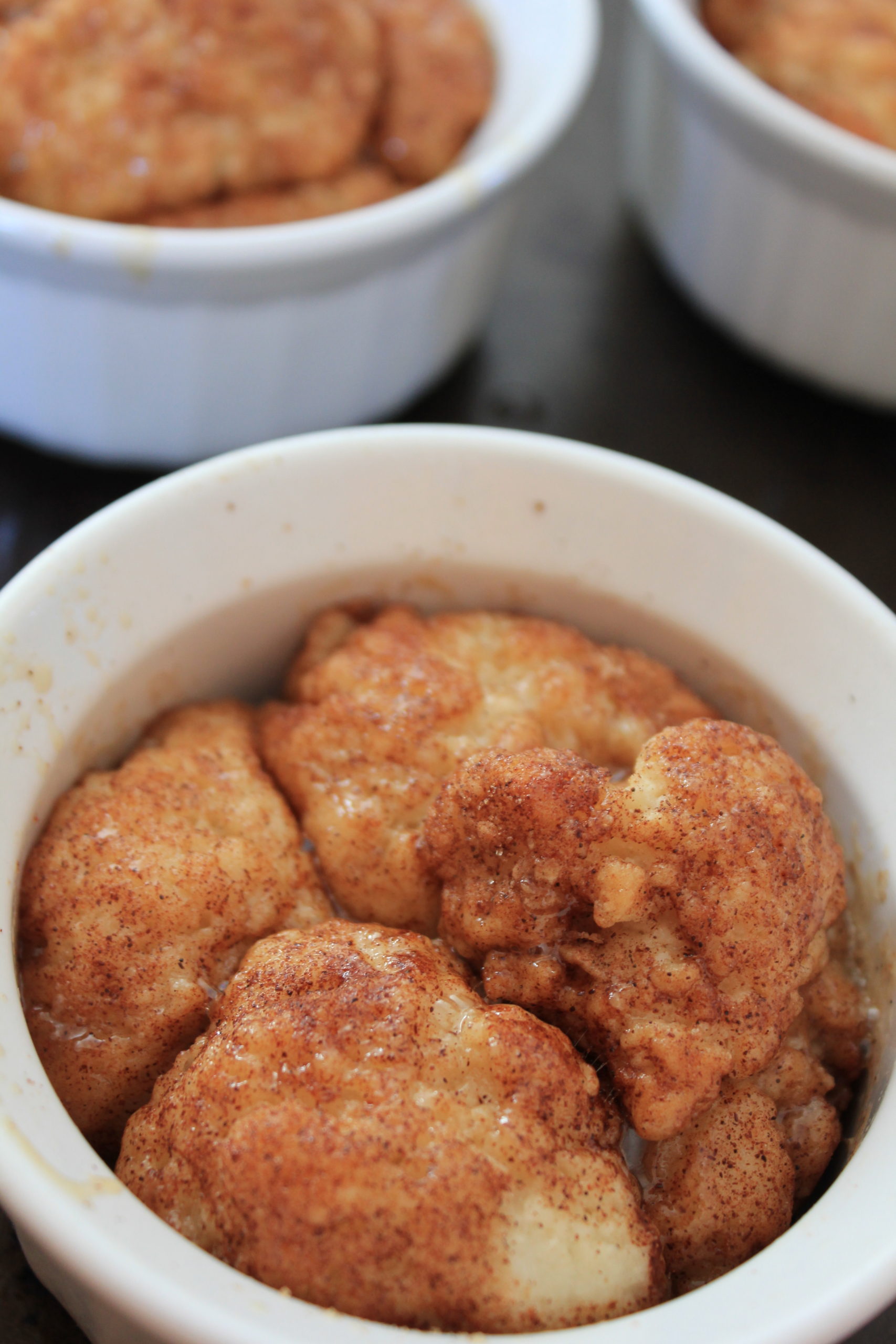 - Melt butter, then mix in honey and cinnamon/sugar. Pour over dough in the dish.