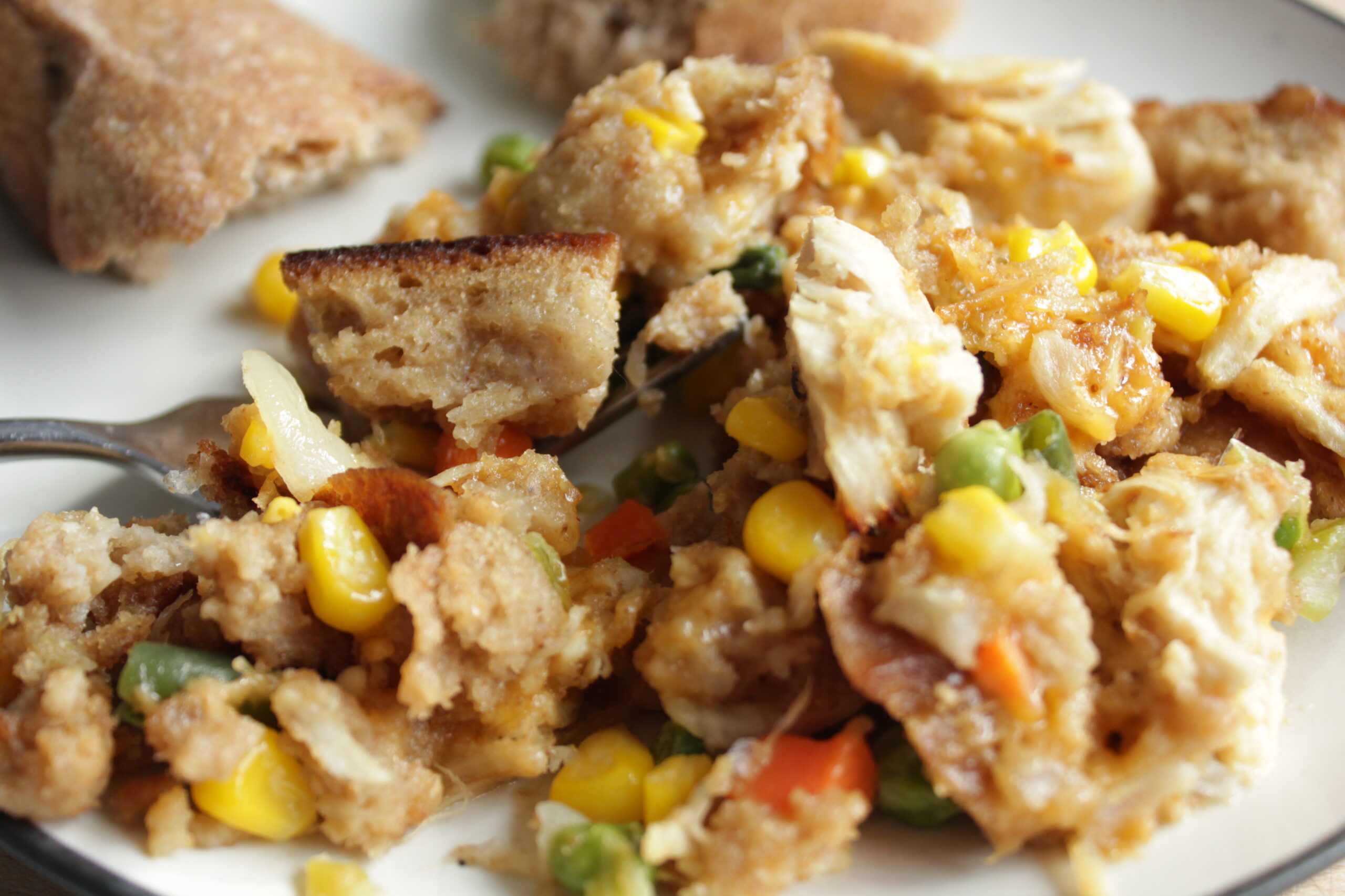Add the cubbed bread and mix.